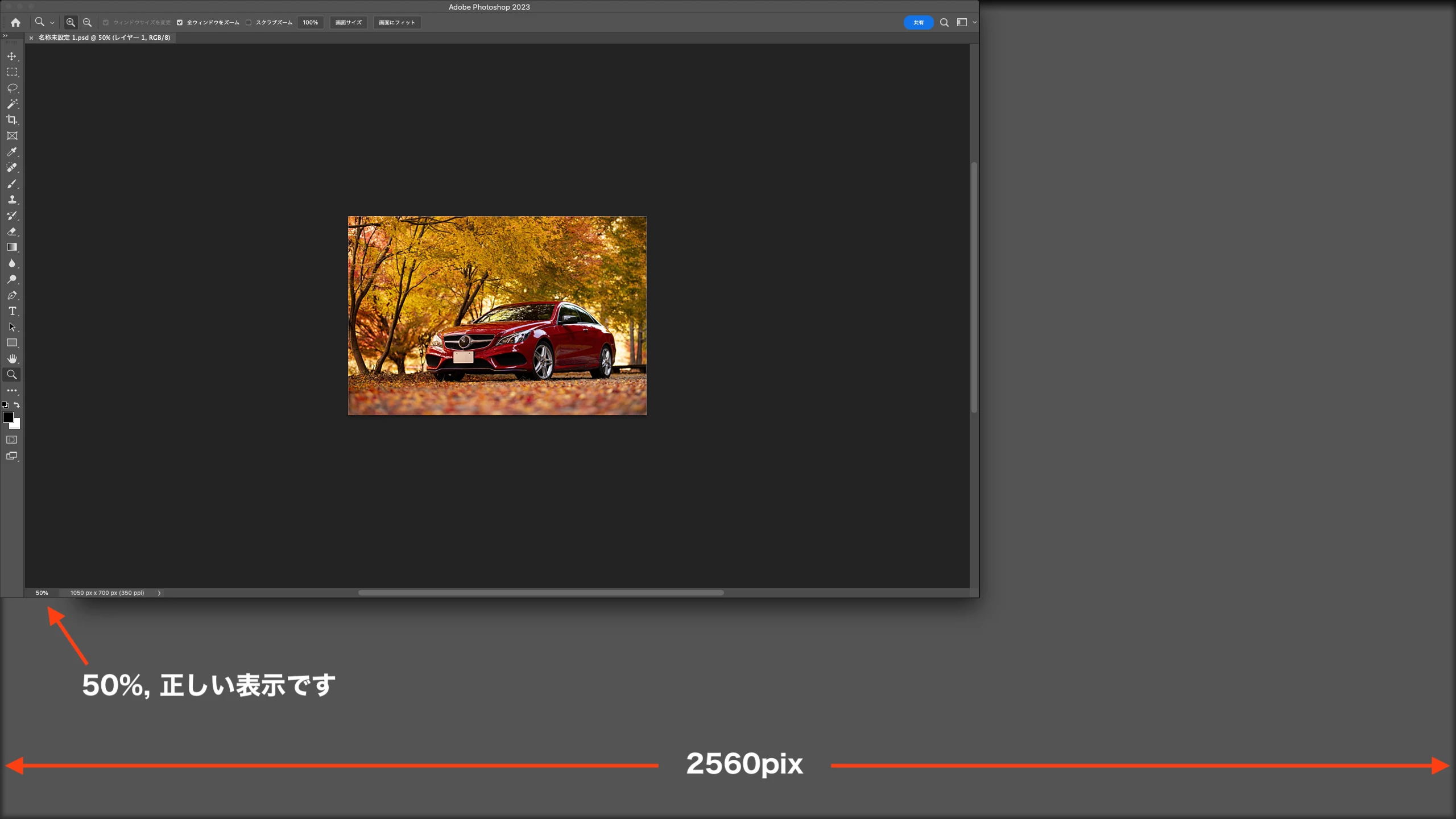 Photoshop のその「%」表示は Retina (HiDPI) ディスプレイでは1/2の表示になります。
