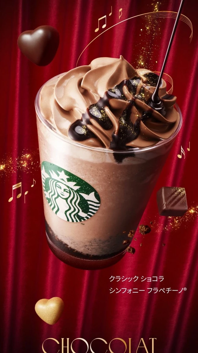 スターバックスの画像は、手前から奥に向かって金粉?を掛けている演出になっているので金粉がチョコの上に溜まっていますが、添付動画では山形のソフトクリームの3Dモデルを使用したので、床に滑り落ちてしまっています。(設定が悪いのが原因ですが…)(*PIは現状3Dモデルの利用に制限があります)