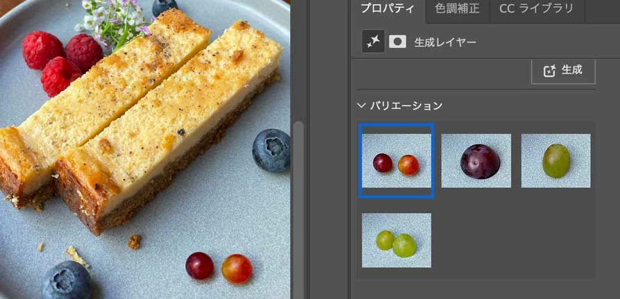 生成塗りつぶしと生成拡張でできるバリエーションが以前の3個から4個に増えました。これで、より多くの候補を見ることができ、再生成の手間が省けます。