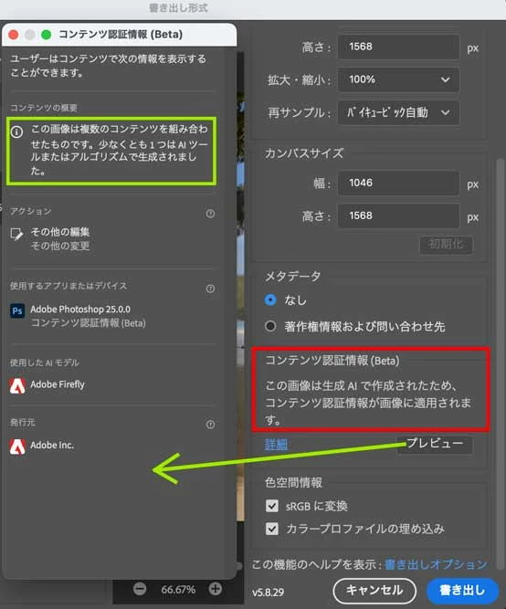 [生成塗りつぶし/拡張:コンテンツ認証情報の自動添付]