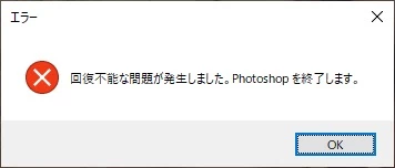 Photoshop Beta版のアップデートで「回復不能」のエラー