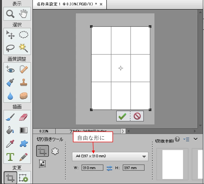Photoshop Elements 2024 A4縦の切り抜きツール