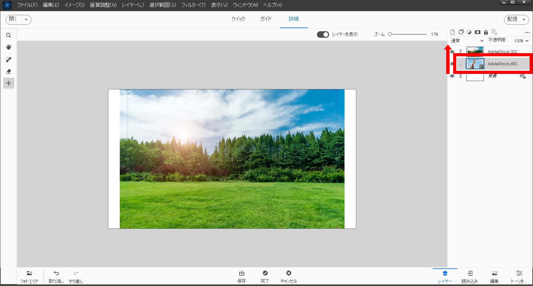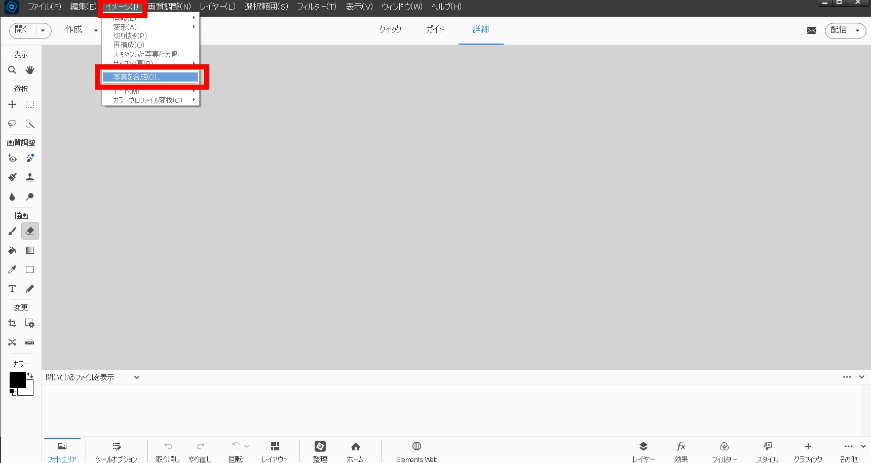 合成に使用する写真をPhotoshop Elements へ追加します。