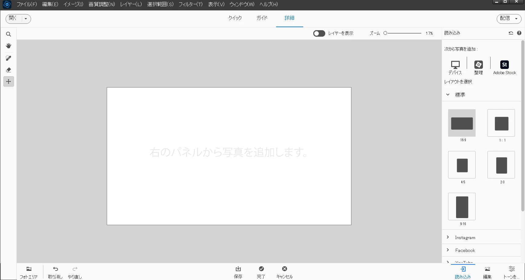 Photoshop Elements を起動し、スタートアップ画面で「写真の編集」を選択します。
