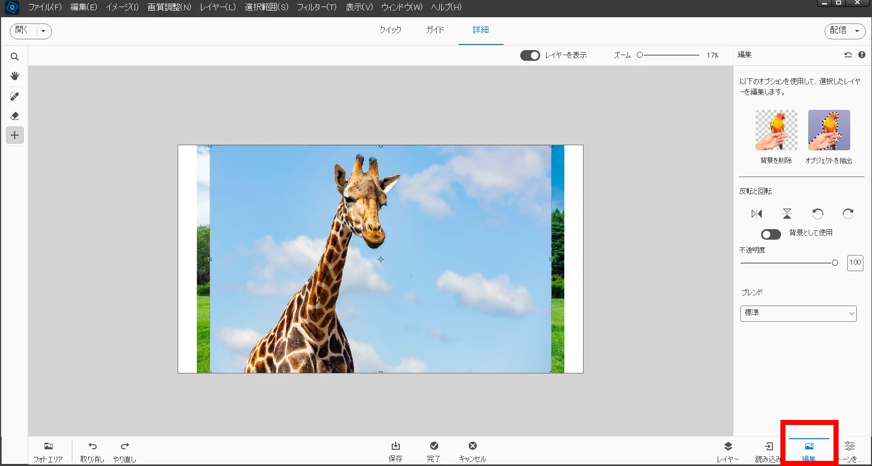 画面右下部分の「編集」をクリックし、編集オプションを表示します。