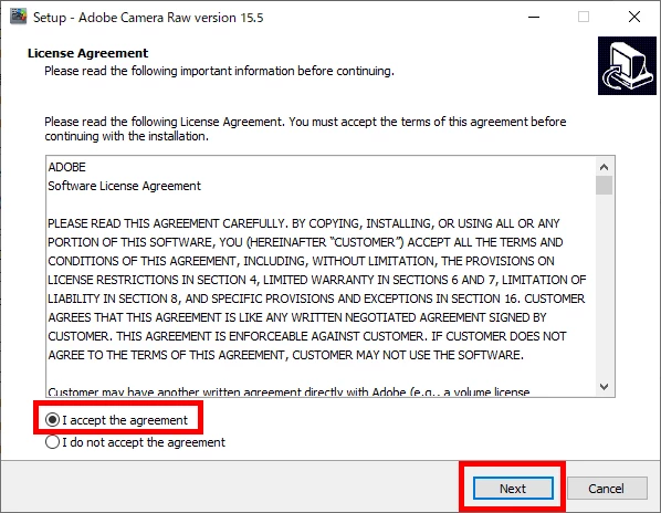 ■macOSをご利用の方:https://download.adobe.com/pub/adobe/photoshop/cameraraw/mac/15.x/CameraRaw_15_5.dmg - ダウンロードされたexeファイル(macの場合はdmgファイル)をダブルクリックし、実行します。