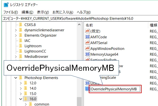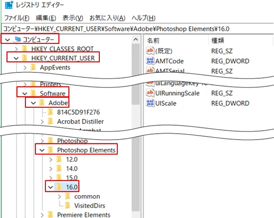 「コンピューター¥HKEY_CURRENT_USER¥Software¥Adobe¥Photoshop Elements¥15.0