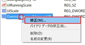 ⑥新規に作成されたレジストリキーの上で右クリックし、開いたコンテキストメニューから「修正」を選択します。