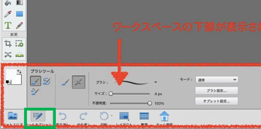 >どうすれば下部のツール設定の箇所を表示させることができますか?
