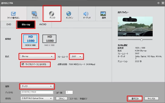 Premiere Elements 2018では、Blu-rayとAVCHDディスクの作成は出来ません。