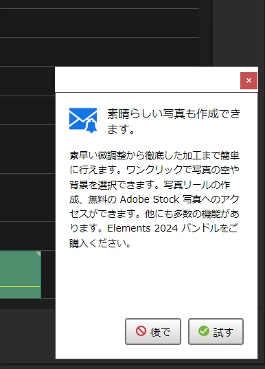 Premiere Elements 起動後の広告を二度と表示させない方法