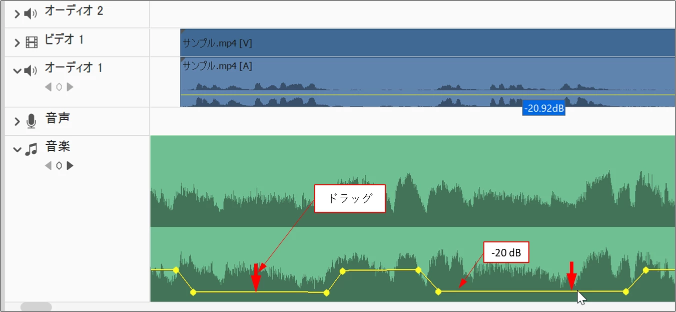 Premiere Elements2024の音楽音量調整について
