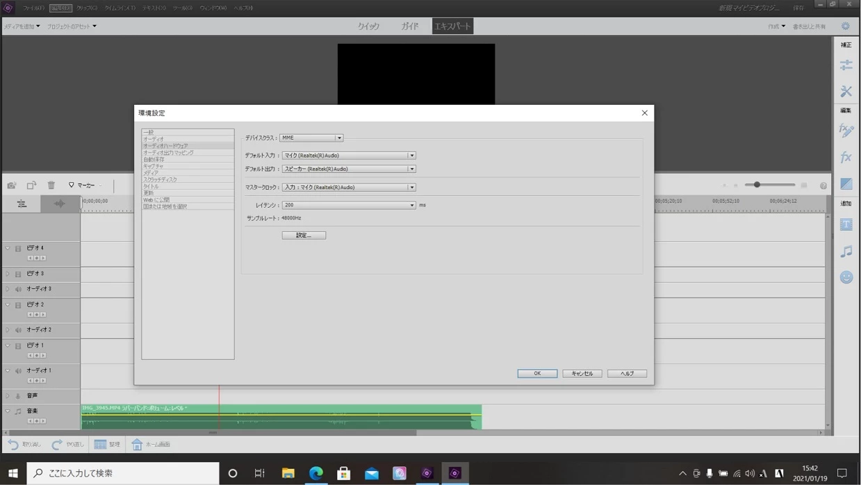 Premiereelements2021をインストールし、編集をしたところ動画などは普通に再生でき加工ができるのですが、音声のみ流れません。フォーラムにある設定で色々やってみましたが再生できませんでした。