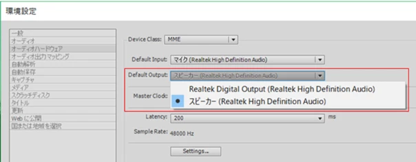 逆になっている場合は、正しいほうに選択し直します。これで音声が出ます。
