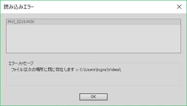 メディアを追加の操作でメディアを取り込もうとする際に、「ファイルは次の場所に既に存在します」とエラーが表示されます。