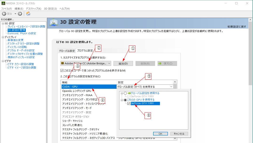 NVIDIAのコントロールパネルで、レンダリングGPUをGeForceに設定してもダメでした。