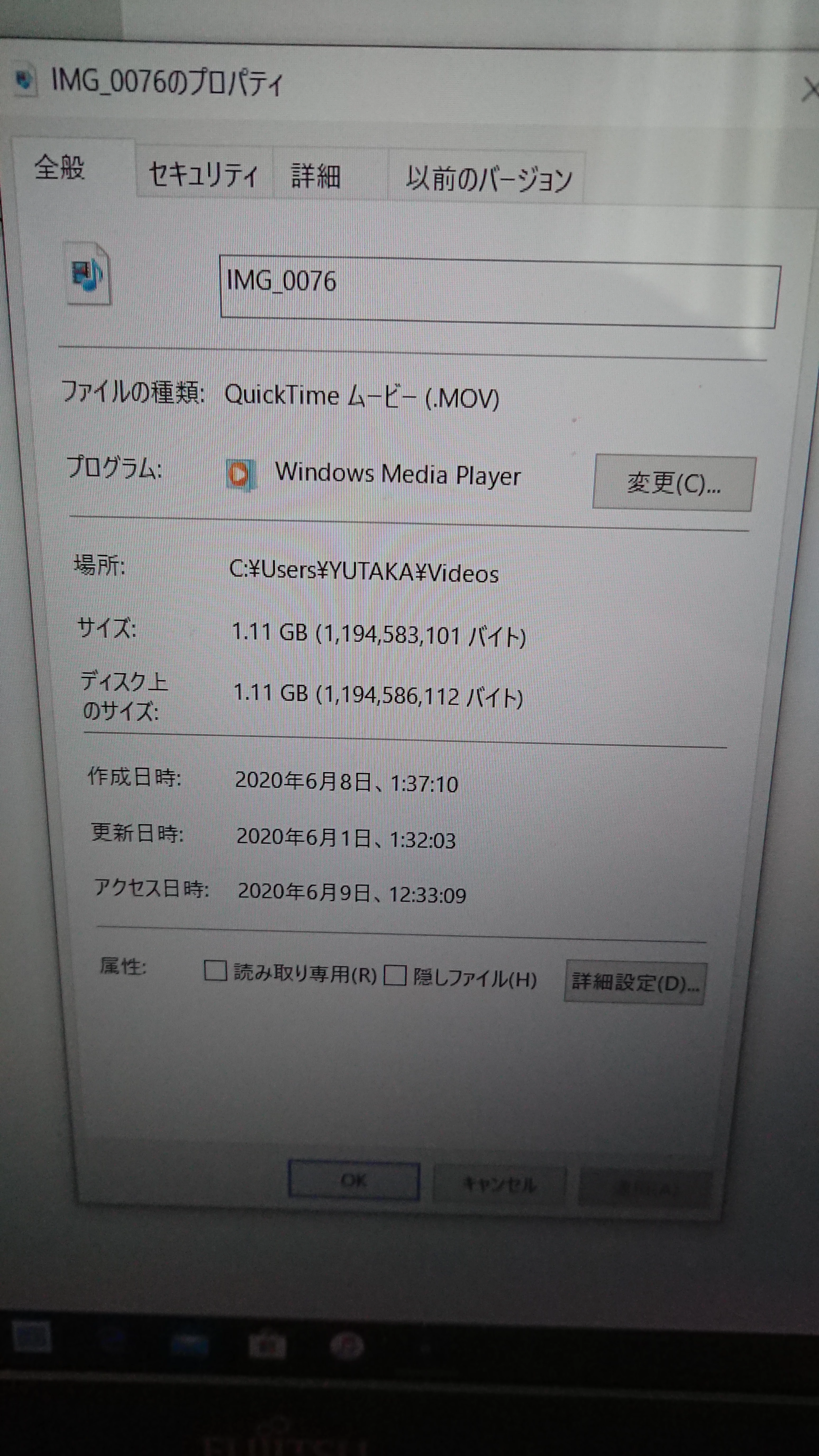 パソコン上のプロパティ↓