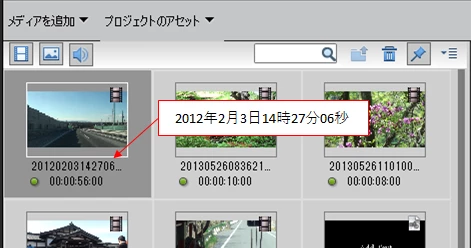 もし、すりむ&しっぽさんがソニーのビデオカメラをご使用なら、PlayMemories Homeを使用してビデオカメラから映像を取り込めば、ファイル名に日付が表示されますよ(下図)。