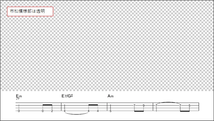 ③楽譜1段?より上の部分が透明になったフレームサイズ1920×1080の画像が作成されます。保存は「.psd」または「.png」ファイル形式で行います。「.jpg」ファイル形式ですと透明が保持されません。