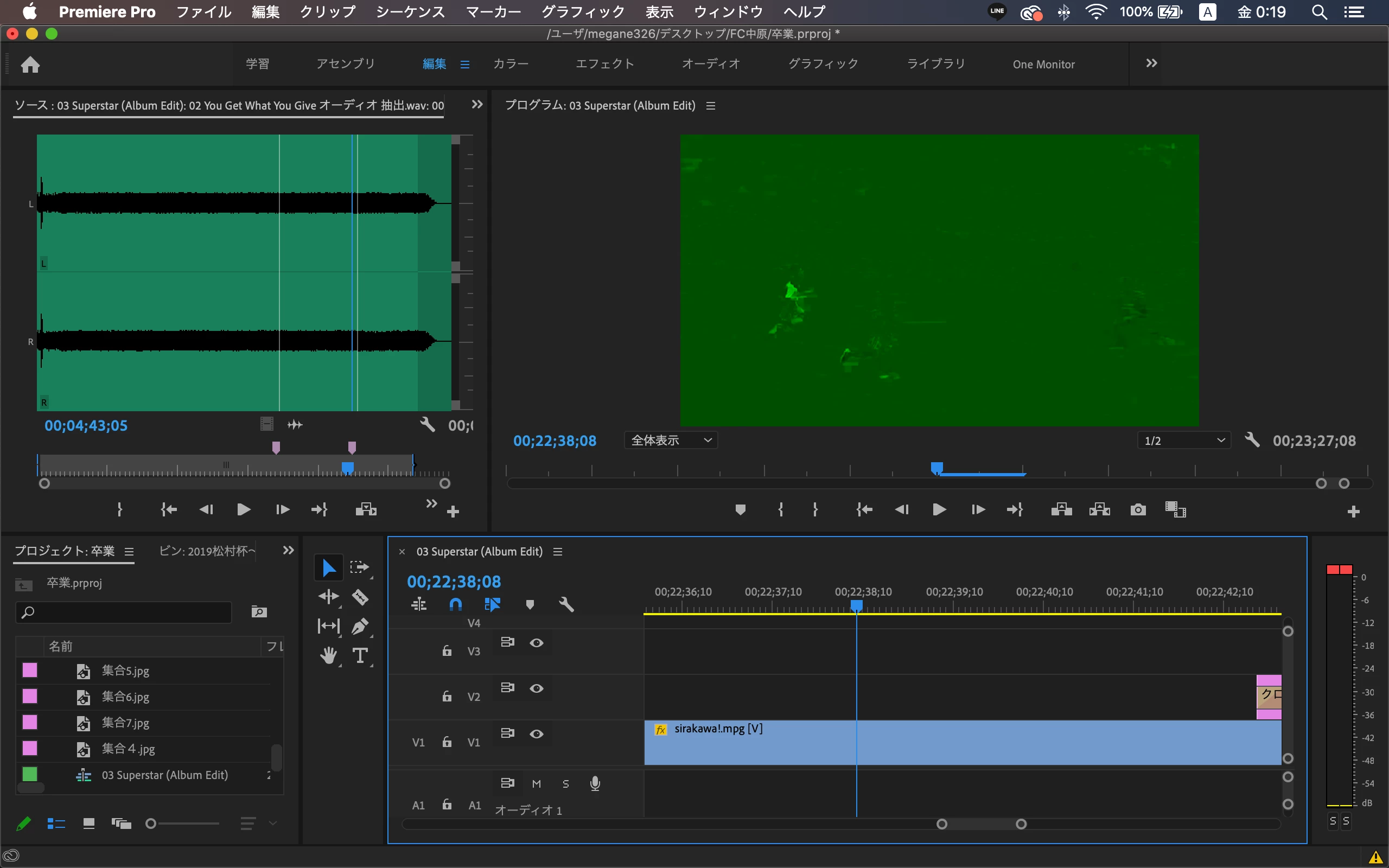 Premiere Proで動画(mp4)をマウントして編集るすると、なぜか緑色になったり、ノイズが乗ったりします。マシンパワーが低いからなのか、解決方法が知りたいです。