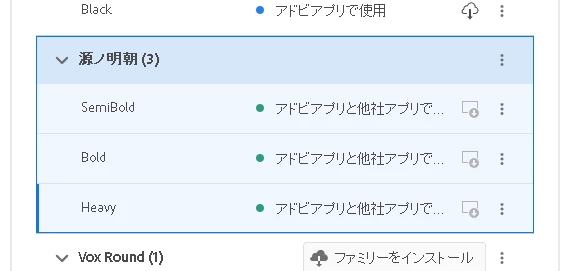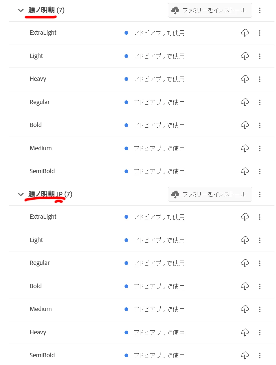 源ノ明朝をインストールしているのですが、HeavyをPremiereで認識しなくなって、ExtraLightが新たに追加されるようになってしまいました、どのような要因が考えられるでしょうか