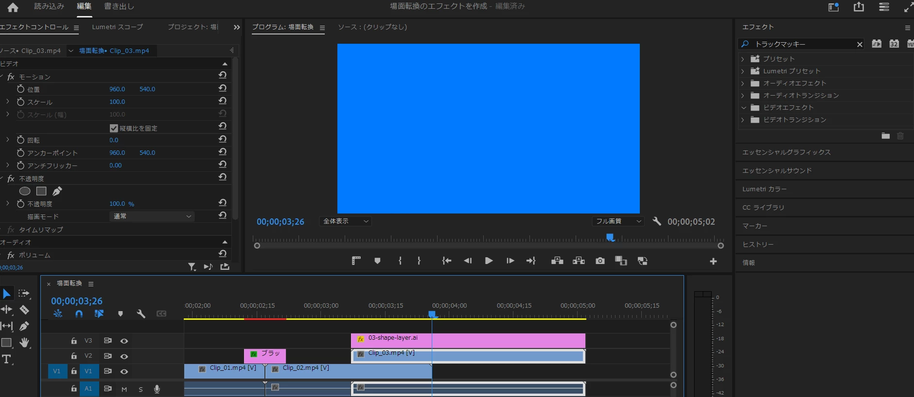 【Volume 2】ことはじめドリル Premiere Proのおしゃれな場⾯転換でオリジナリティを出そうで「トラックマッキー」が出てこない