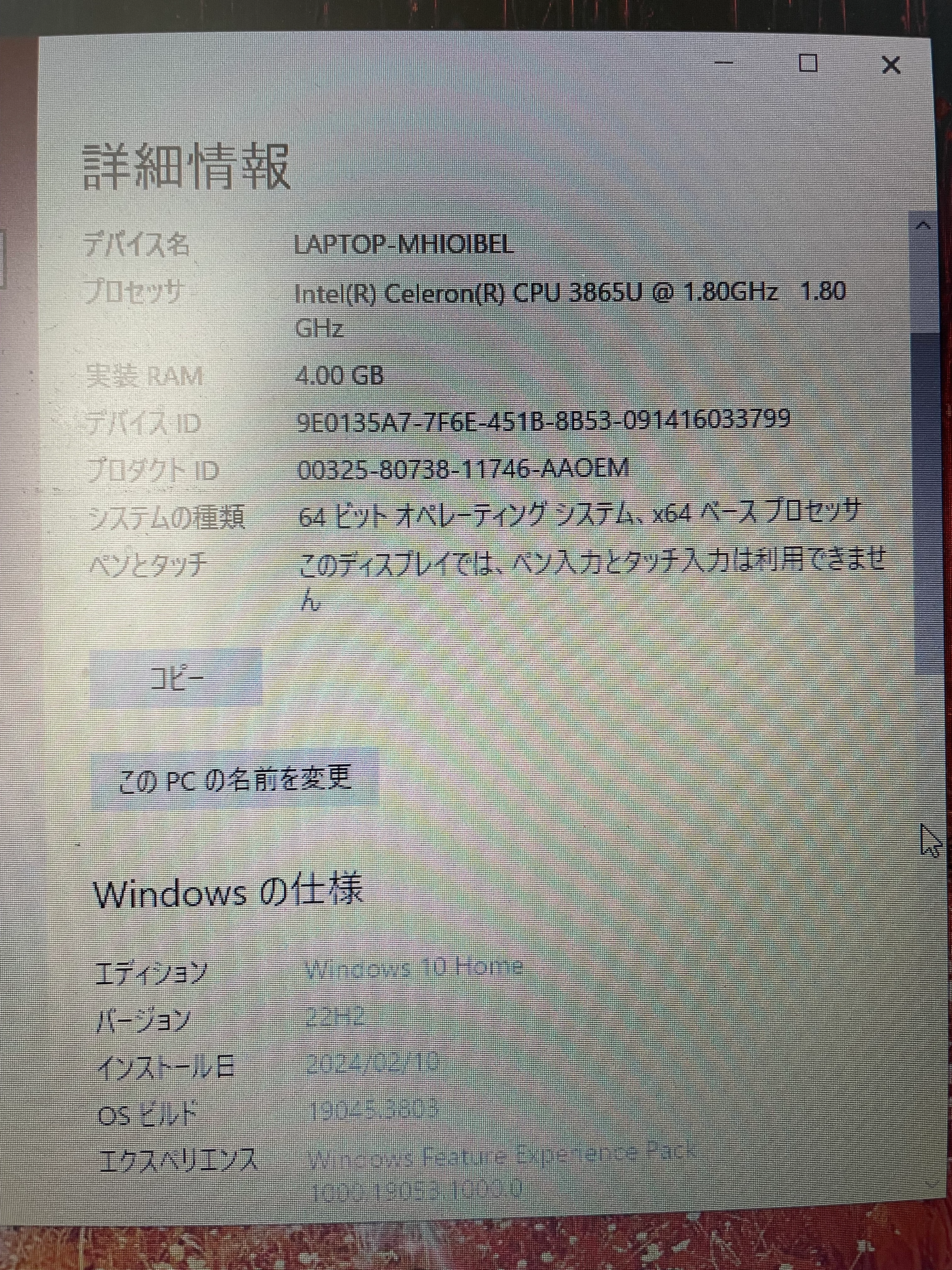 ・CPUはIntel第6世代以降となっていますが、PCのCPUは第3世代(3865U)のものです。「注意」項にIntel第3世代以前のCPUではインストール出来ないと記載があります。
