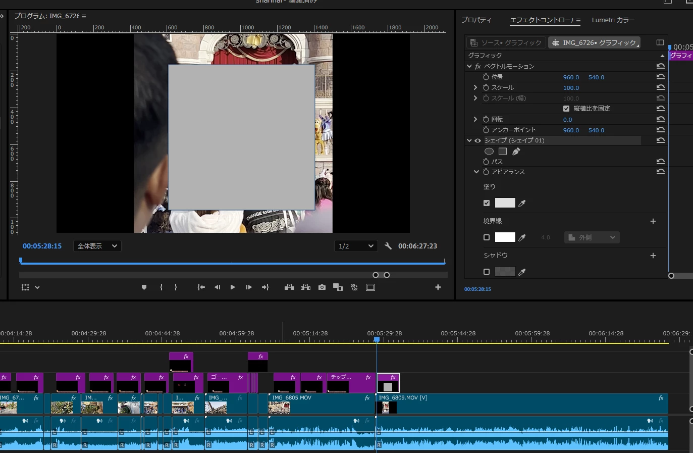 ③他のシーケンスで「グラフィック」クリップを作成して試してみます。