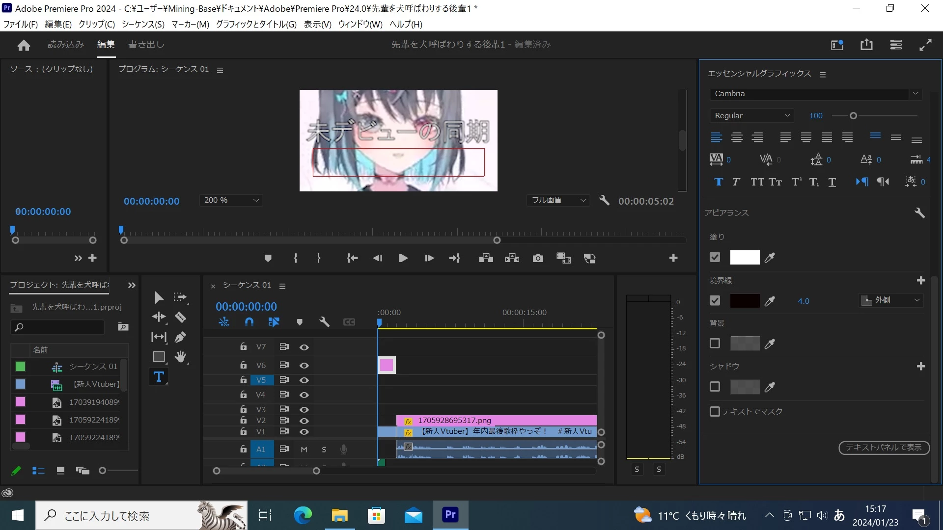 Cambriaは私の環境(Windows 10 v22H2+Premiere Pro v24.1)では正常に表示されています。