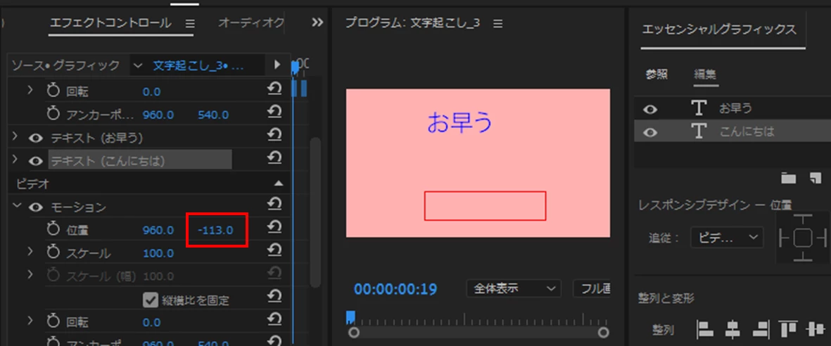 エッセンシャルグラフィックに複数のテキストを入力しても一つしか動画に反映されない