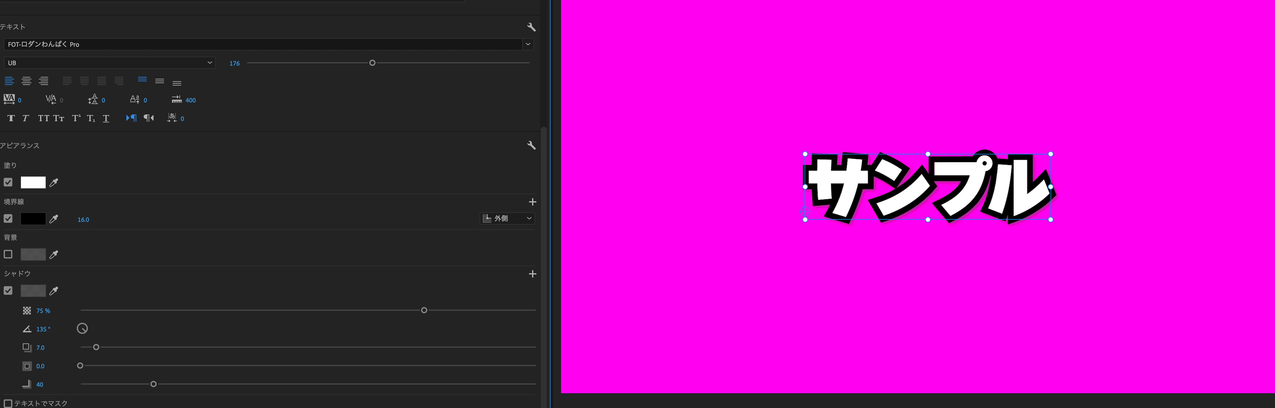 その後に、各テロップをPhotoshopに持ち込んで(コピペして)、デザインの最終的な精緻化を行うという使い方をよくしています。