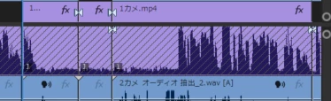 その後、編集を続けているとオーディオクリップ全体に斜線がかかり完全に無音になってしまいました。