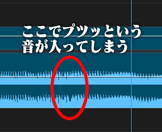 カットのつなぎ目ではない部分でプツというノイズが入ってしまう