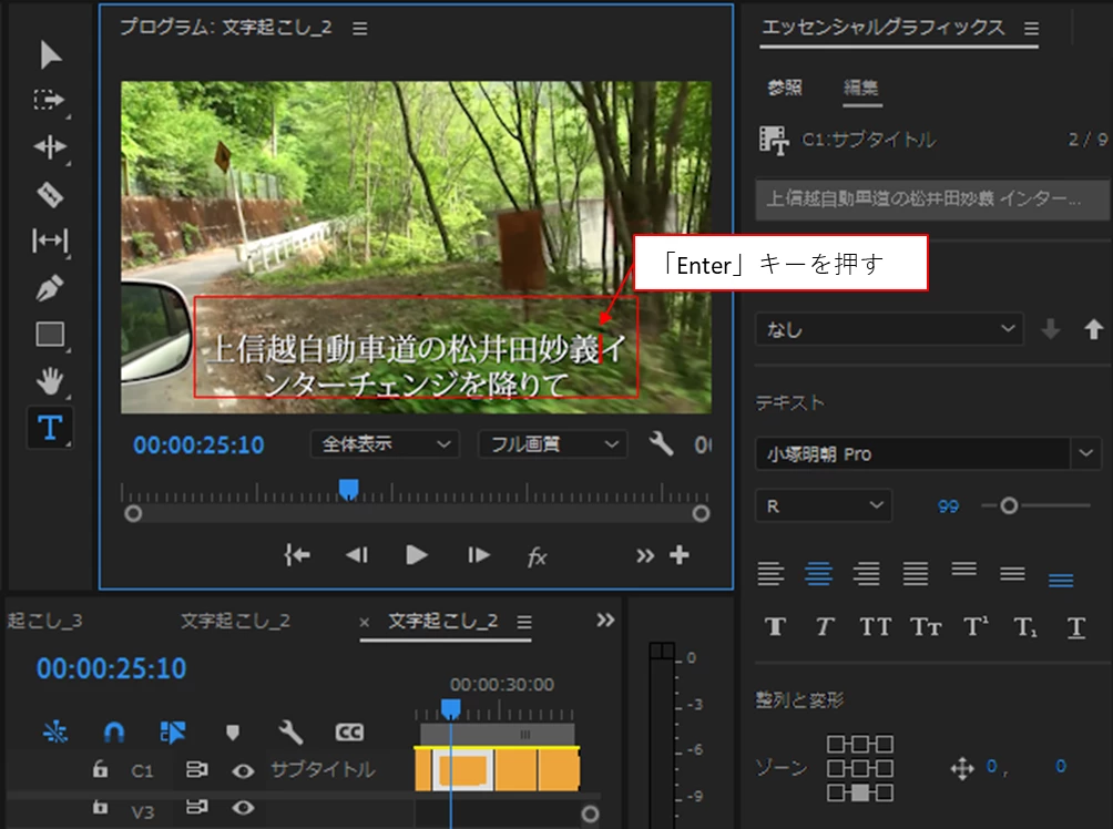 キャプションの誤字修正等と並行して改行位置を調整しているのですが