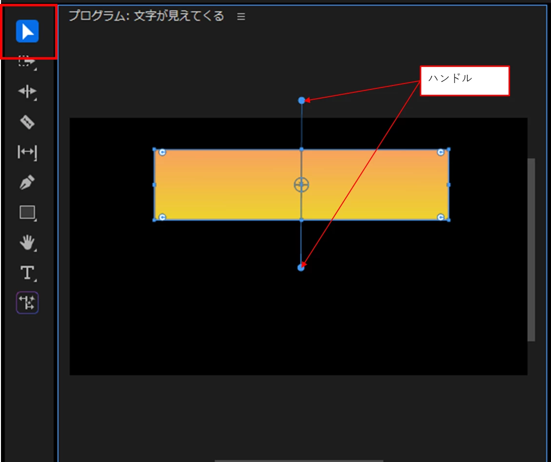 ②続いて、「選択ツール」に持ち替えるとシェイプの中にハンドルが表示されます。