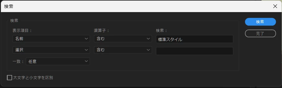 「検索」機能はありますが、これを使ってもスタイルはヒットしません。