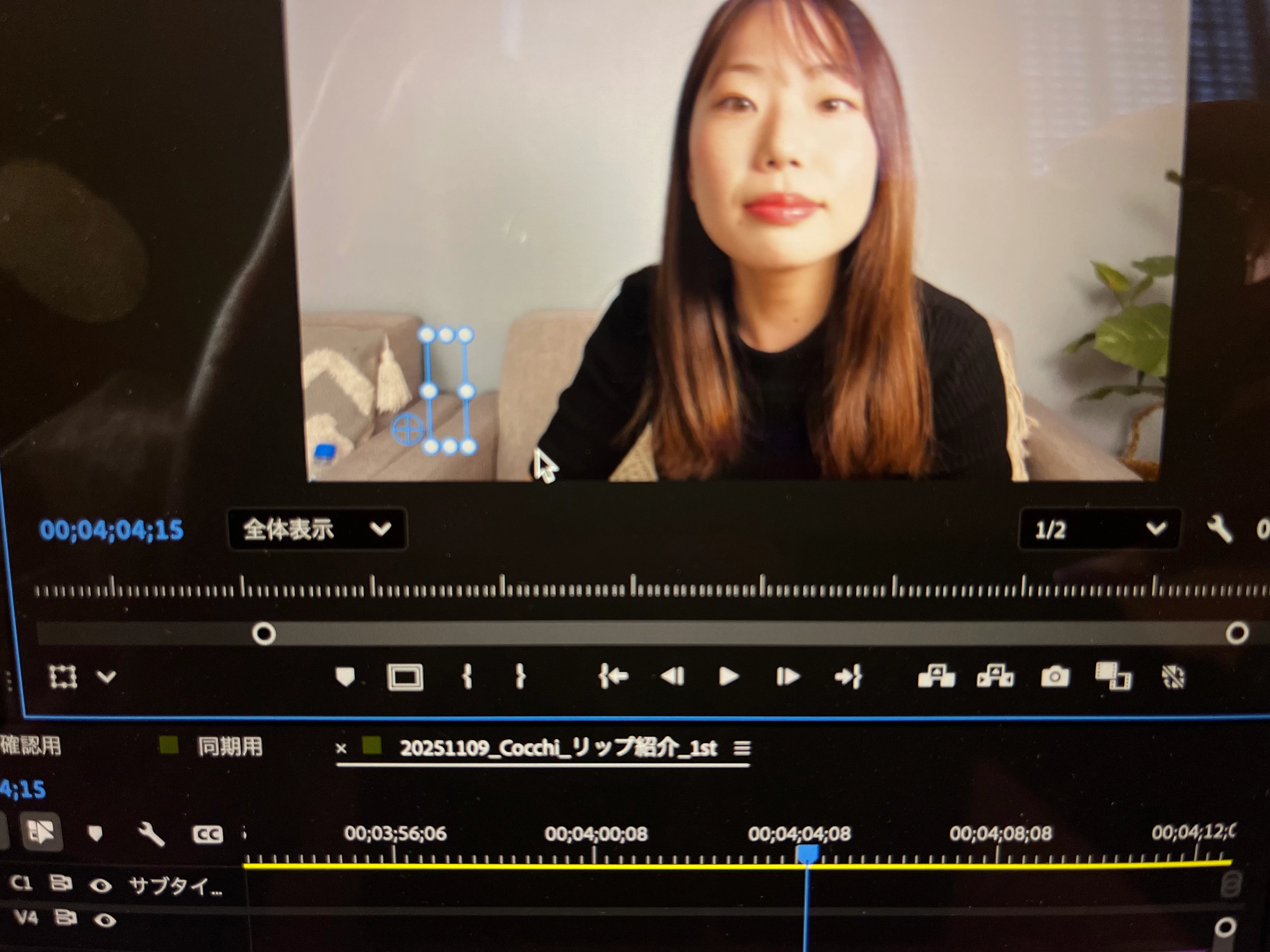 また消去後、テロップを入力する場合は「ツール」パネルの「T」(横書き/縦書き文字ツール)を持ち、1クリックしてテキスト入力ボックスを表示しテキストを入力します。