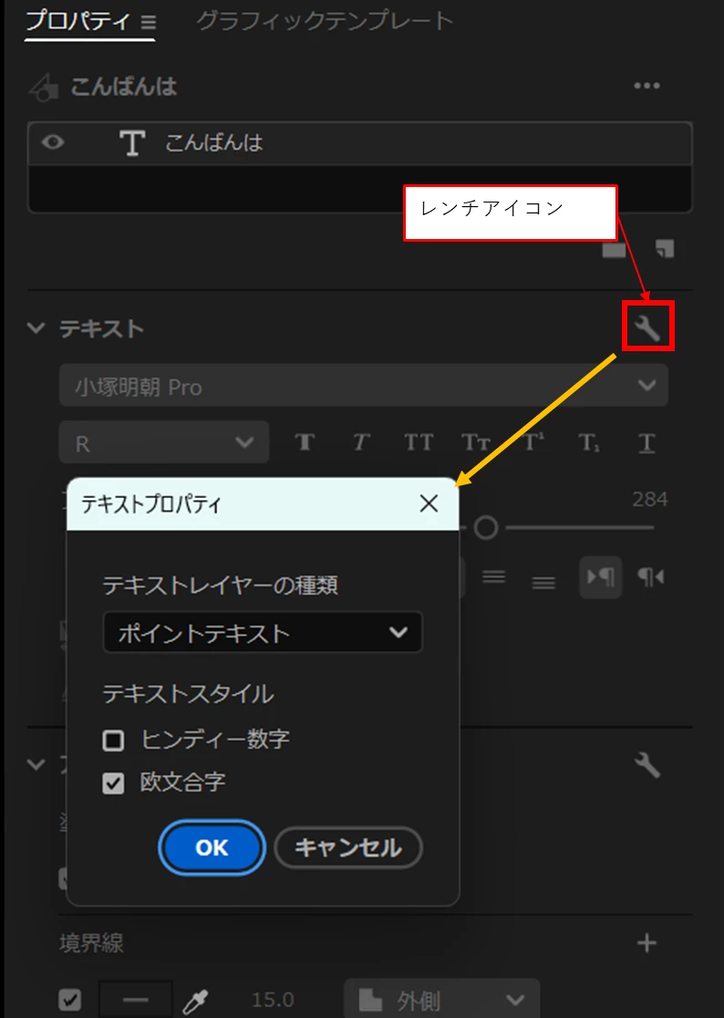 テキストプロパティの中の「テキストレイヤーの種類」の追加方法