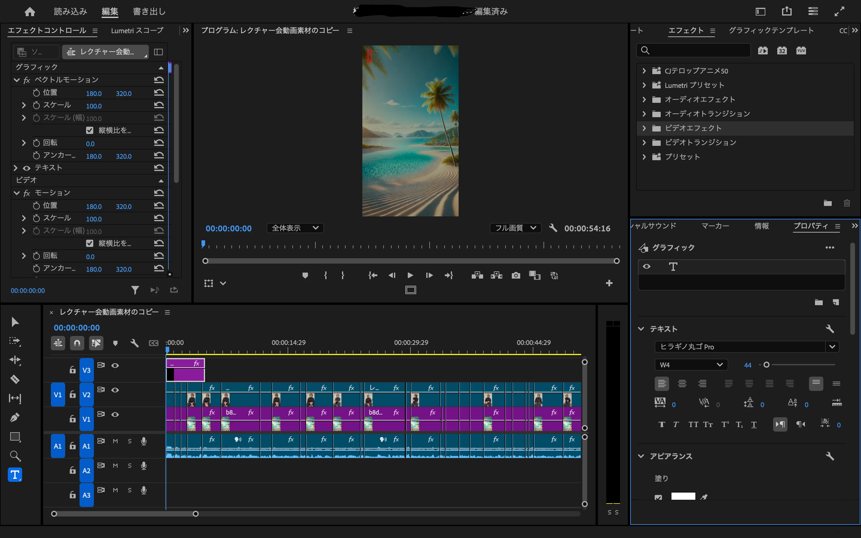 ①テロップクリップを削除したら元に戻るのでしょうか。またテロップクリップをV4トラックで作成して試してみます。