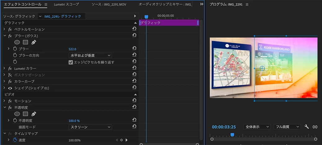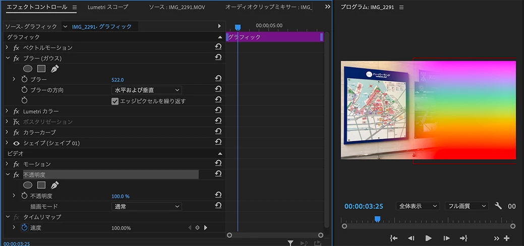 不透明度にキーフレームを追加して効果を調整します。