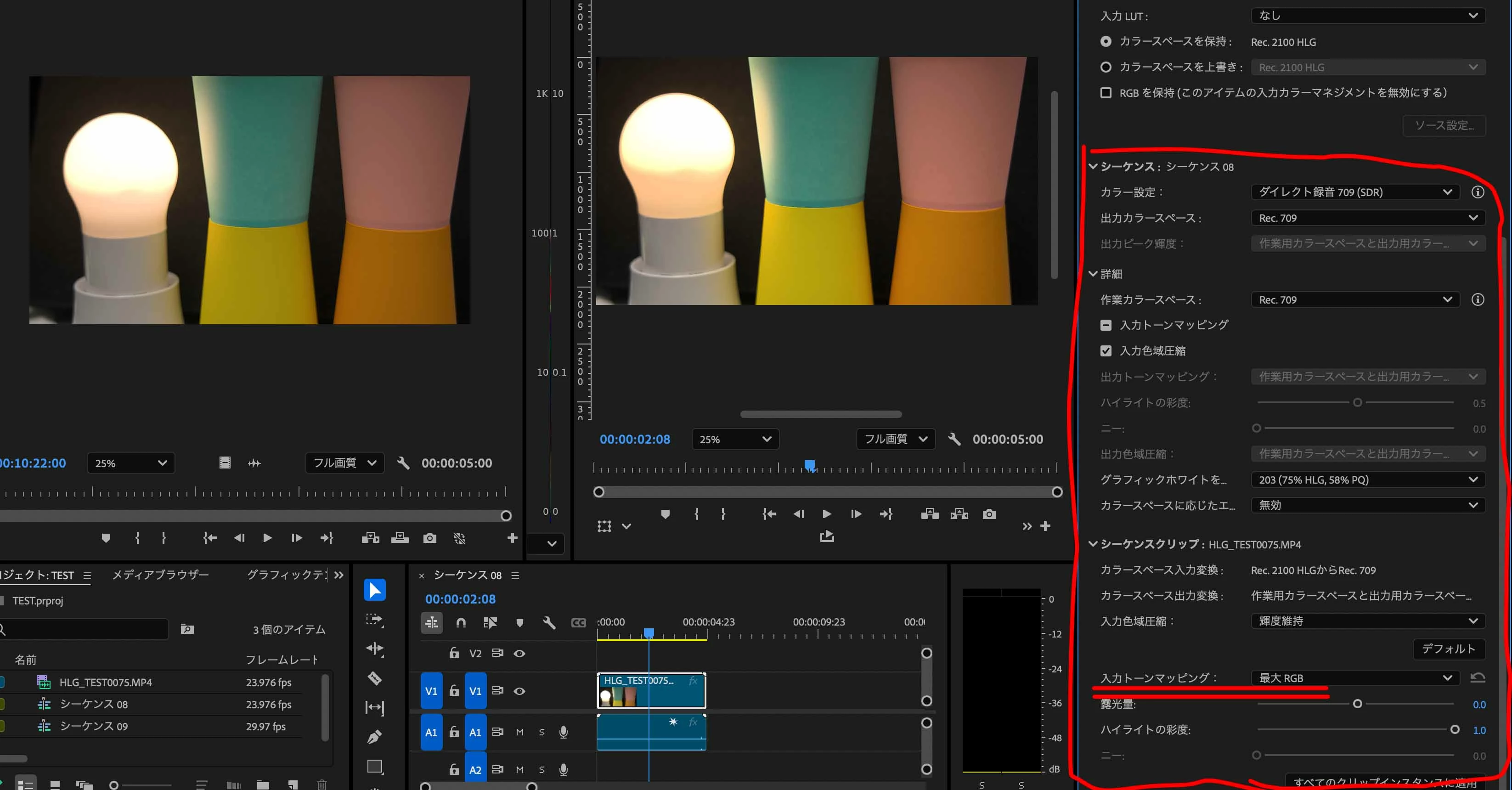 >素材のフッテージ変換から709に上書きしてみたりしたんですが
