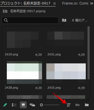 プロジェクトパネルをサムネイル表示(アイコン表示)に変更した際、並び替え設定がリセットされてしまいます。