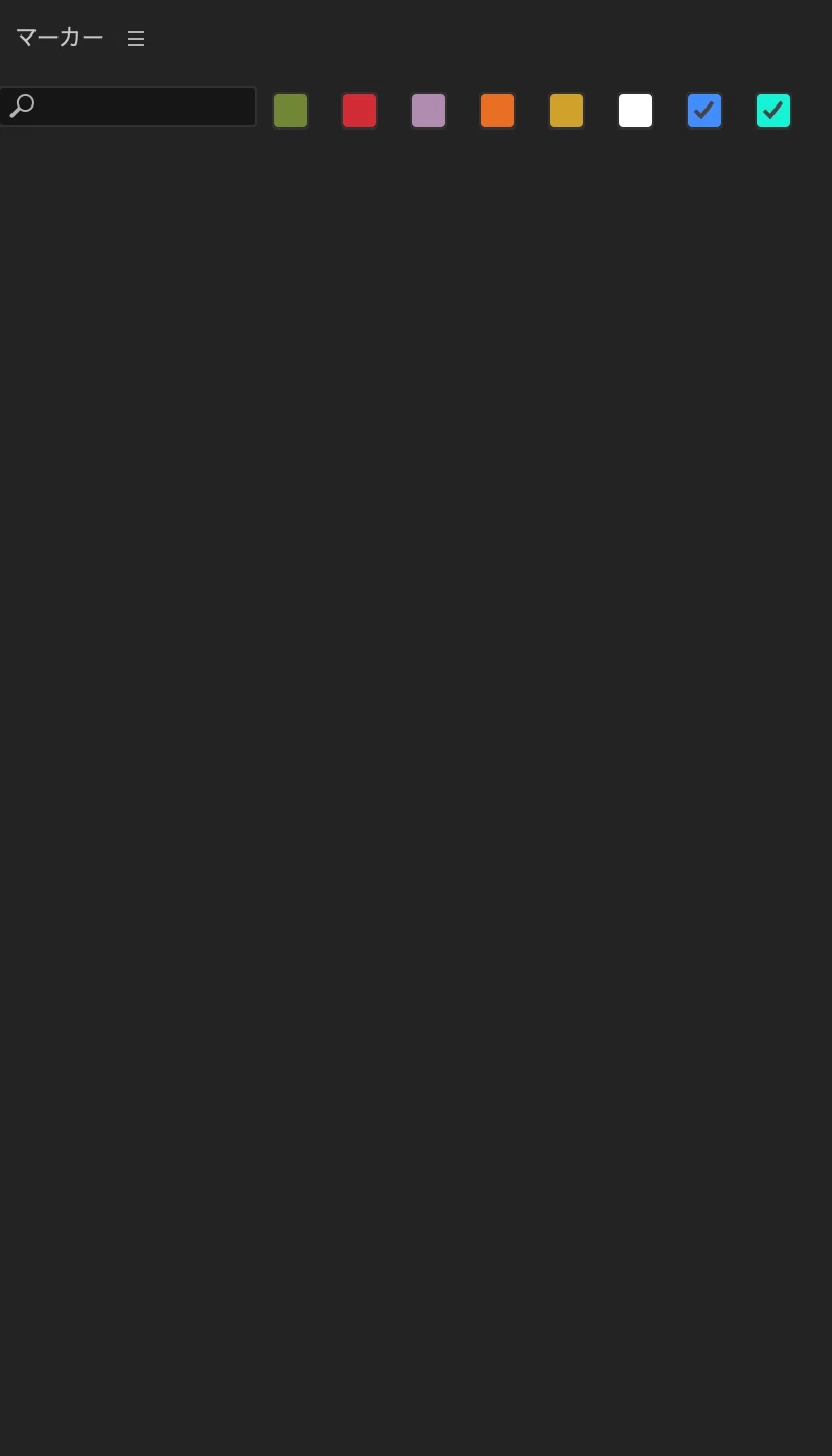 マーカーパネルを一旦閉じてまた開くと一覧が表示されるのですが、