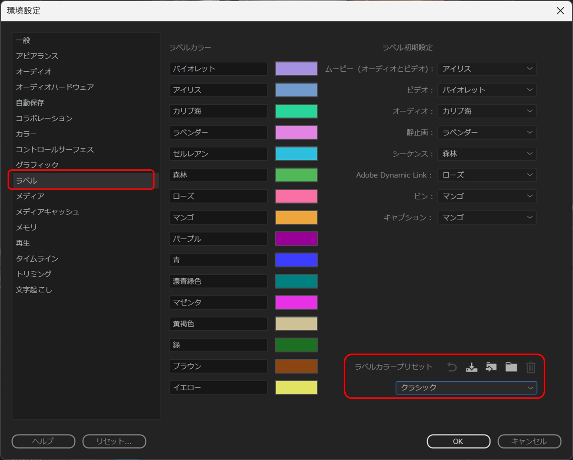 「環境設定」の「ラベル」を開き、「ラベルカラープリセット」を「クラシック」に設定すると以前のカラーに戻すことができます。
