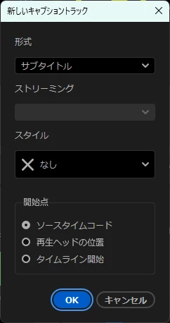 ・「新しいキャプショントラック」ウィンドウが開きますので、そのまま「OK」をクリックします。