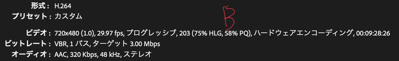 画像のBは720*480で書き出していますがAも同じ条件にしても結果は変わらずかなり書き出しに時間がかかりました。
