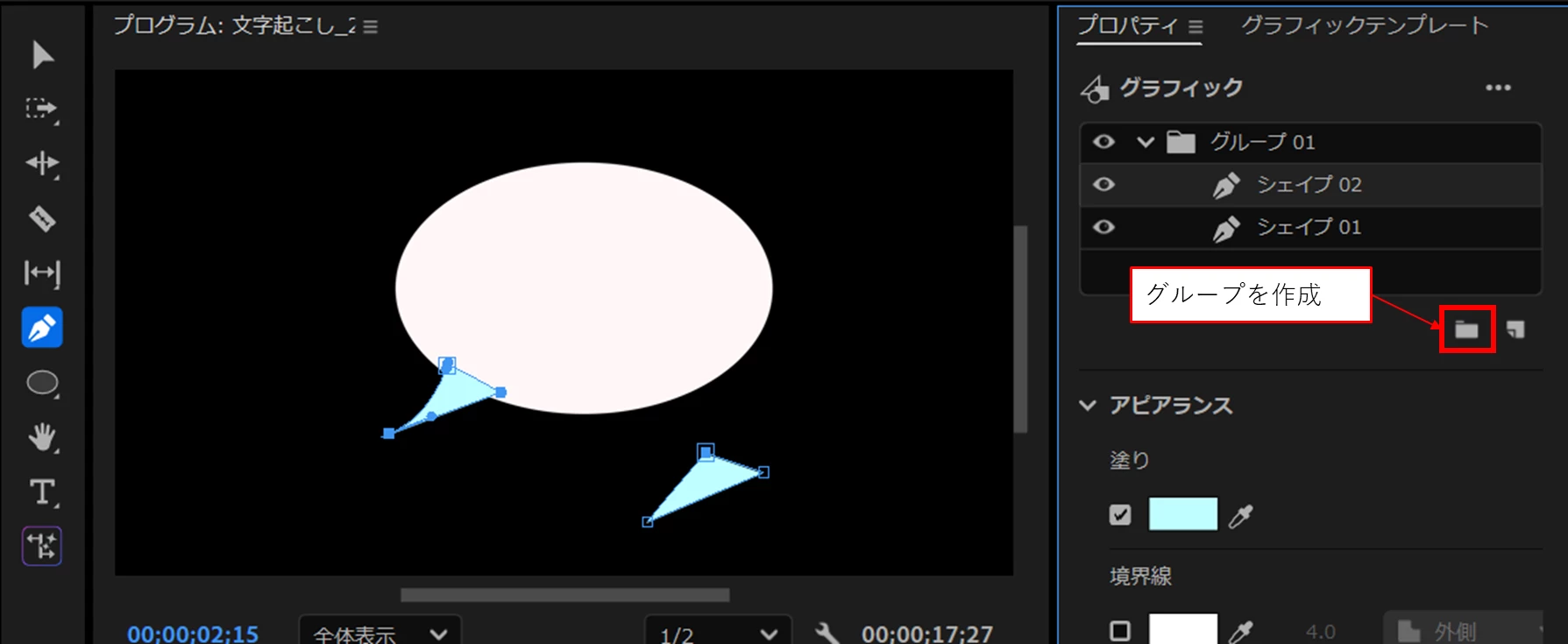Premiere Proで吹き出しを作成する方法は次の2つの方法があります。