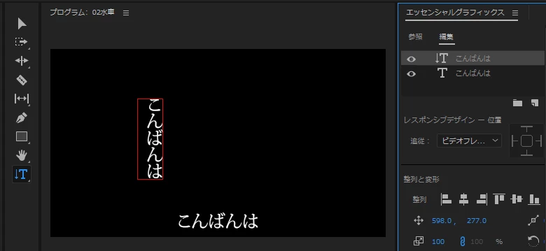 ⑤横書きテキストを削除します。