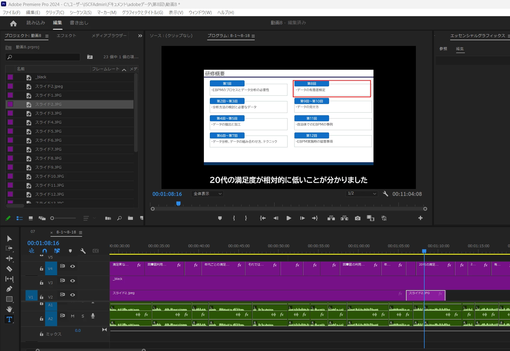 Premiere超初心者です。動画研修教材を会社で請け負ったのですが、動画編集者が急遽作業できなくなり、全くPremiereを触ったことが無い私が作業しています。