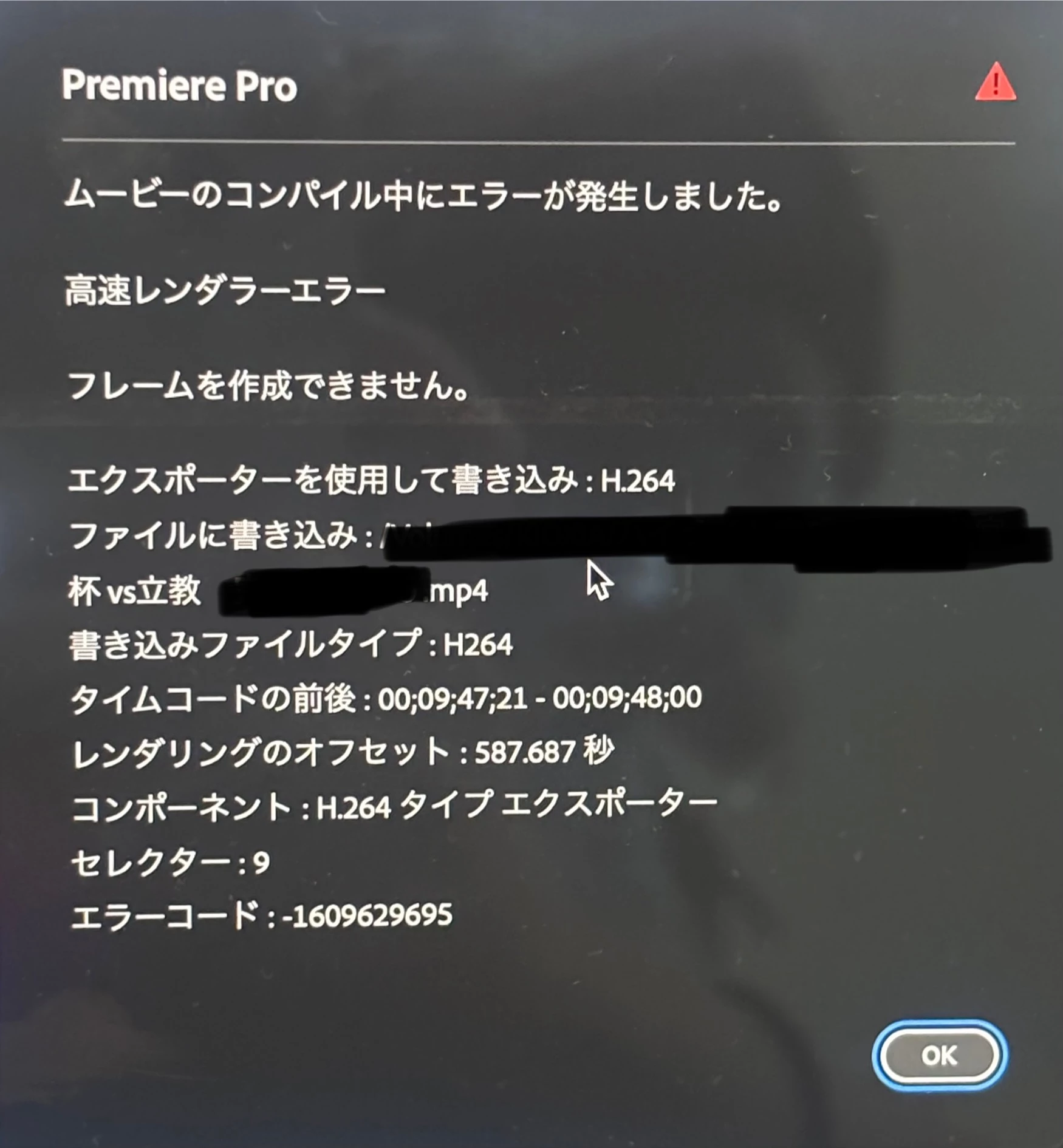 動画を作成後、書き出しをしていると92%程までいったところで、このような表示が出てきてしまいます。